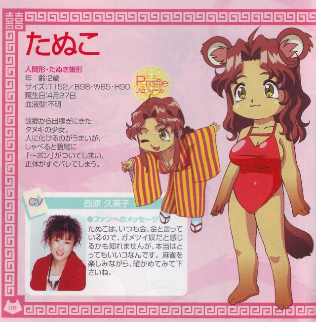Update: This post gets an awful lot of hits for “Tanuki Girls” and “Cute Tanuki”, so, for those of you who came here looking for that, here’s a scan of Tanuko’s character page from the manual. Knock yerself out.