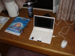 I wound up dropping roughly $400 on the EEE. At least it runs Windows XP home and they include a USB optical mouse and 4GB SDHC card in that price, a US machine for the same amount comes with Linux and no accessories.