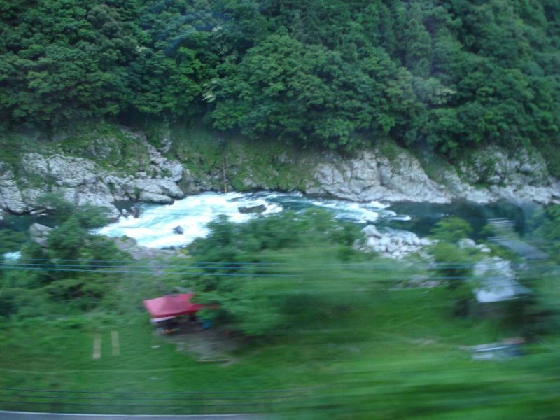 After you cross the bridge and wind up on Shikoku, you get to the natural scenery part of the ride; mile after mile of forested mountains punctuated by occasional bursts of civilization and cultivated fields. For a while, we were following a river – no idea on the name – that had absolutely stunning emerald water and tons of rapids, it was criminal how difficult it was to take any photographs from a moving train.