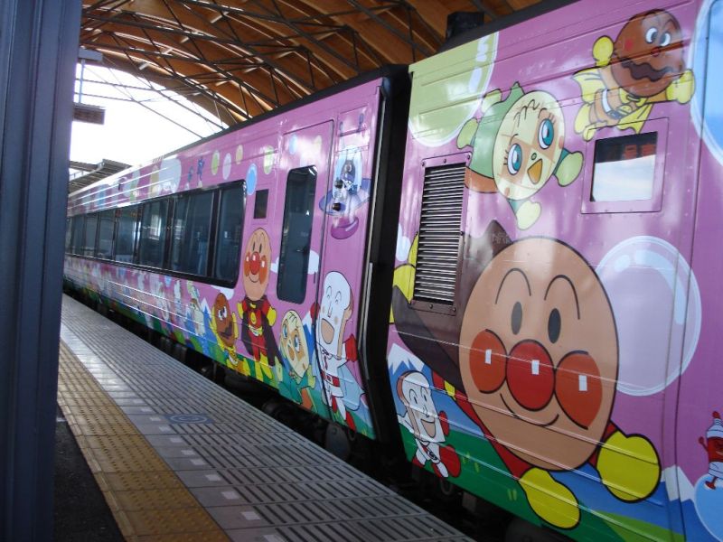 Oh, Kochi prefecture is apparently the birthplace of Anpanman, Japan’s favorite edible superhero, so some of the local trains are covered in Anpanman characters. Here’s one that happened to stop in front of me while I waited for my train back to Okayama.