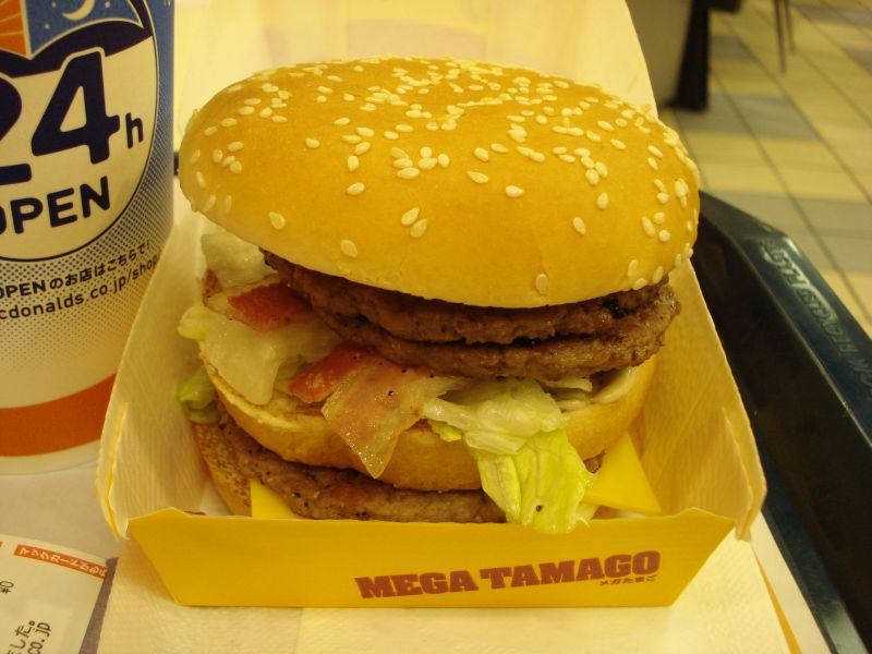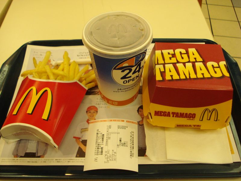 Tonight I tried the Mega Tamago. In a land where food portions tend to the smallish, McDonalds has tried to go in exactly the opposite direction. The Mega Tamago – or, as it will be called from now on, the McGutPunch (with egg) – consists of:
