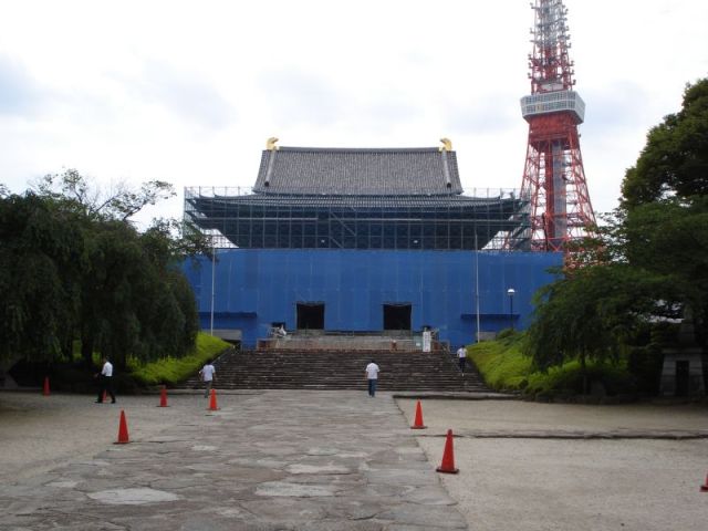 To get to Tokyo Tower, you go past Zojoji Temple, which is normally quite stunning. Right now – not so much.