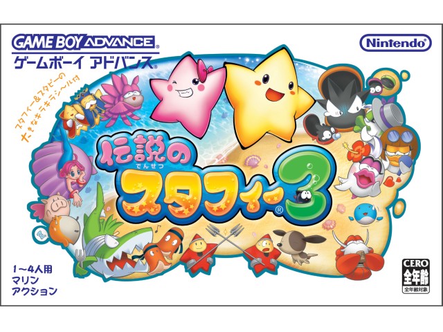 Here’s the box art for Starfy. If you’re a bit sketchy on understanding the crazy moon-man language they speak in the land of Legendary Starfish, the bit of text in the upper left proudly proclaims that it comes with a “big, sparkly” sticker enclosed. That should pretty much nail the target age group for you.