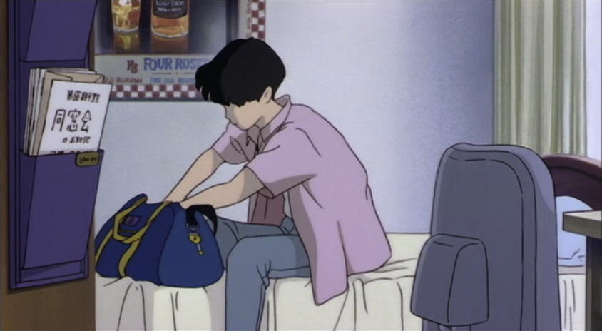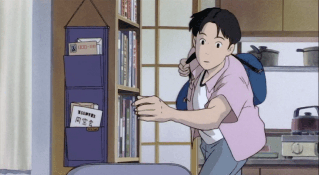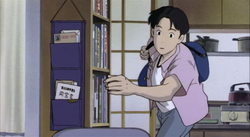 Here’s a very early shot from inside Taku’s apartment. Note that, while Taku is centered in the frame, there’s a very obvious piece of paper tucked into his mail sorter on the left side of the frame.