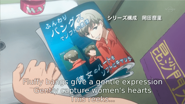 The second, and larger, problem is this: Most fansubs use “ass/ssa” style subtitles. This lets the subtitler do all kinds of neat positioning and graphical effects with the text. Here’s a VERY simple example.