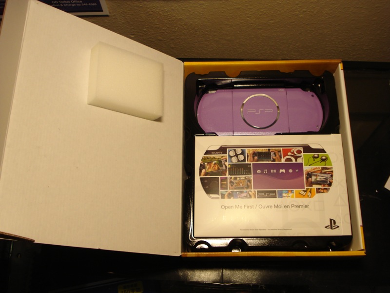 At that point, owning a second PSP became a lot more justifiable, and I found a couple of forum posts that implied that the lilac PSP was free of potentially embarrassing logos, so I decided to bite the bullet, take the plunge, reuse the metaphor and just find out for myself.