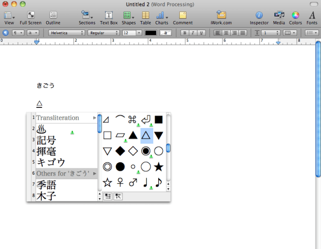 On the other hand, if you can’t be arsed to learn all the different shortcuts for getting the symbols, I JUST learned that you can type in きごう (“symbol”) and you get this awesome chooser.