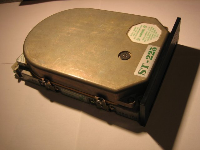 The Seagate ST225 was the go-to drive for 80s geeks on a budget who desperately wanted a hard drive as opposed to keeping everything on floppy disks. At $189 or so if you bought it via mail order, it was the first consumer level drive that I remember to actually break the $10 per megabyte barrier, and being a half height drive you could easily fit two of them into a standard XT clone case. Call it 5.25″ wide x 9″ long x 1.5″ high, though I don’t know the exact dimensions. It spun at 3600rpm and had an average seek time of 65ms – that is, if you asked it for any particular bit of data, on average it took about 0.065 seconds to find it, though it could be as much as twice that depending on where the heads were in relation to the data you wanted.