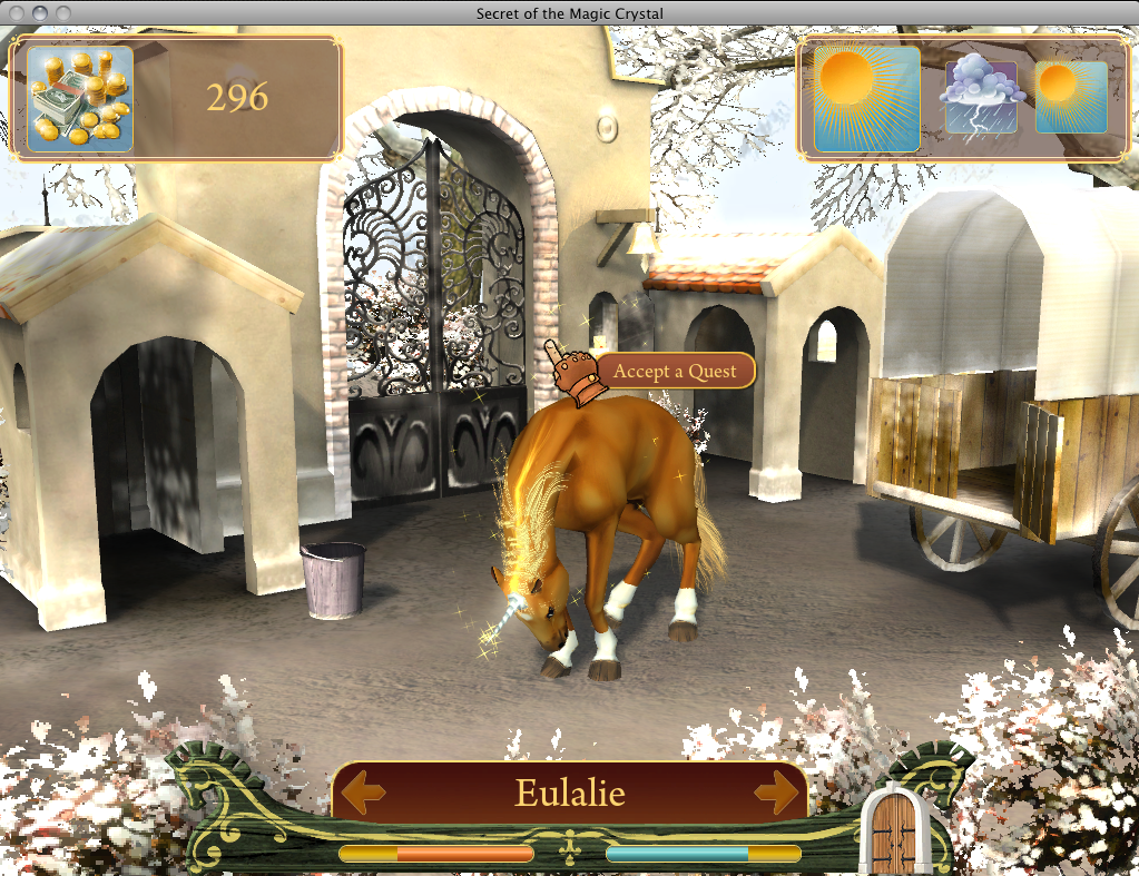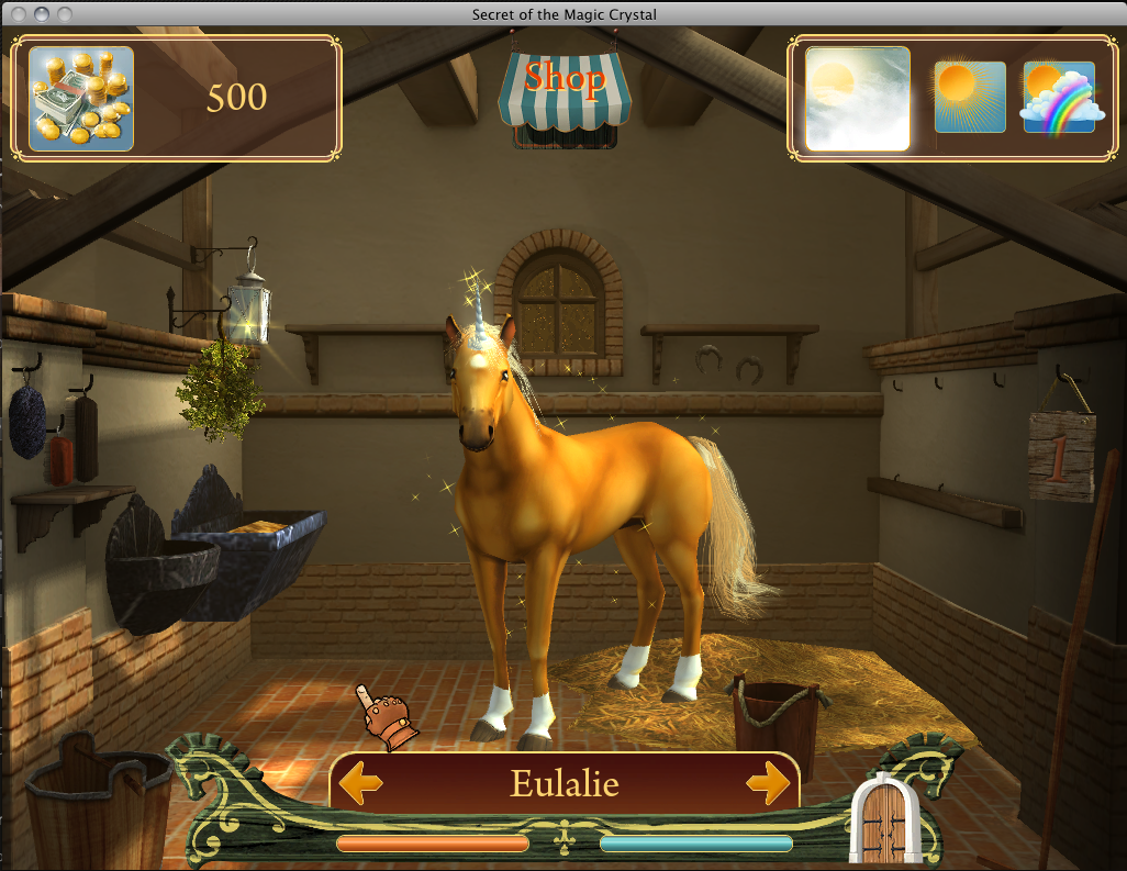 This enhanced my unicorn’s stats, but also tired it out. After a couple of training sessions, he needed to go back to the barn for more brushing.