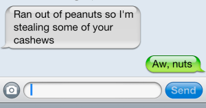 Her text is in white, my reply in green