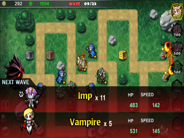 Specifically, they hope to make their fortune from impatient players, as the stuff you can buy from the in-app store all seems to be, at best, slightly more effective versions of stuff you can earn by playing the game. Like, if you can buy a thingy that makes your hero 40% more effective with in-game currency, you can buy a thingy to make your hero 50% more effective with real money. So far, anyway.