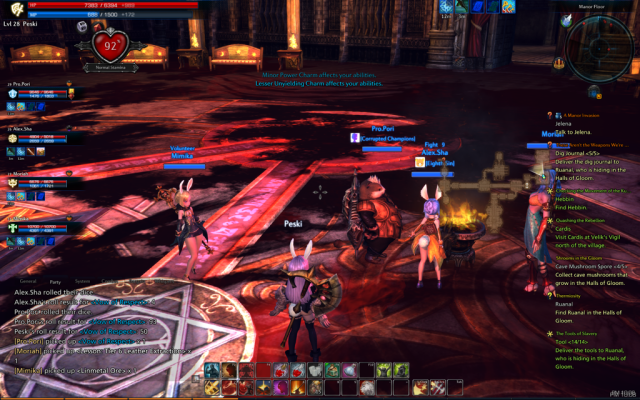 Tera’s big draw is, of course, TRUE ACTION COMBAT its combat system, which is far more action game than traditional MMO fare. Enemies actually dodge, roll away, flank you, give little tells to warn you that they’re about to attack, cast AE spells that have visible areas of effect that you need to avoid… It turns the normal mind-numbing MMO grind into something much quicker and more enjoyable, since you’re actually looking at the center of the screen rather than being focused on four rows of buttons and watching for stuff to come off cooldown.