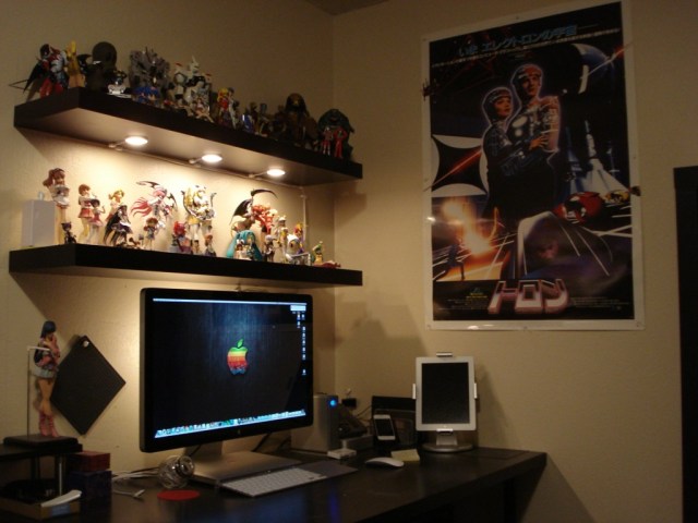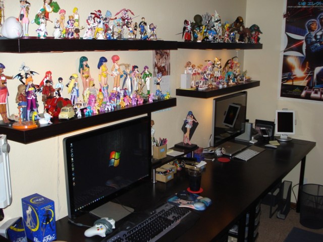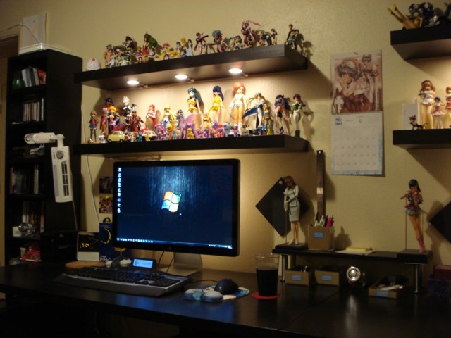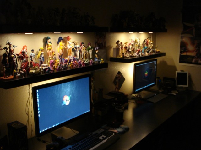 Enter “Dioder” lights on the bottom of the top shelves and attached to the back of both monitors: