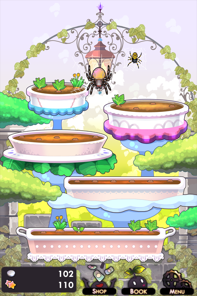 That is, as far as I can tell, all you can do. I had expected, you know, some kind of minigames or something to DO with your horde of mandrakes, but there’s not much to do other than wait until you can harvest mandrakes, VERY occasionally get a new mandrake that goes into your book, save up coins to unlock the art for each mandrake and once in a while swat a spider.