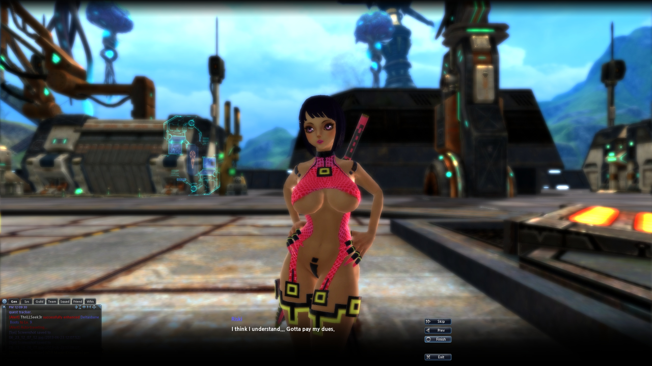 I was therefore rather surprised to read a discussion online which could be summed up as “well, yes, but if you think Tera is bad you ought to see Scarlet Blade”, which of course lead me to immediately look up Scarlet Blade. I do not recommend you do the same if you are at work or if you are browsing the web with your mum sitting behind you knitting a scarf, because it is, in a word, utterly shameless. That’s two words, I suppose, but I think it’s worth it.