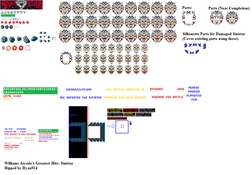 Looking on “The Spriters Resource“, I found the ripped sprite assets from Sinistar, taken from the William’s Arcade Greatest Hits release: