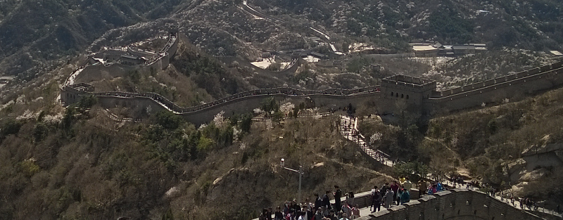 I included a non-cropped, non-resized photo here, if you click on it and follow the wall up until it disappears into the mountains at the top of the photo it might help. I don’t buy the “visible from space” thing, but I get where the notion comes from. It just keeps going.