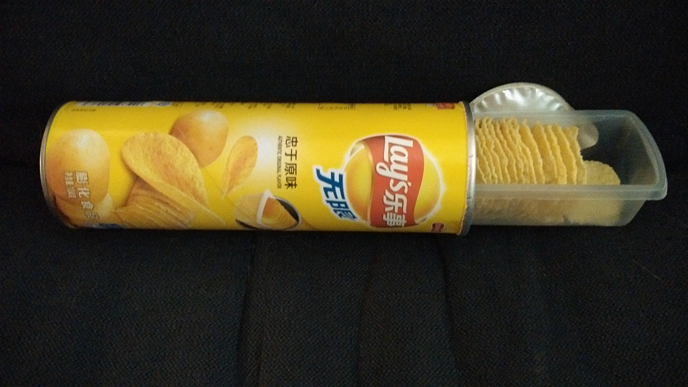It’s a can with a plastic tray in it. You can get the last chips out of the can without dumping crumbs all over yourself and the floor. THIS IS AMAZING and we are all DOOMED. The Chinese have won the junk food wars.