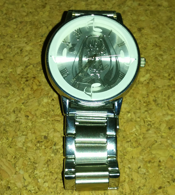 There is a special kind of twitchiness that comes when you’re used to having a watch on and suddenly do not have a watch any more, and I lasted about three days before I broke down and bought a cheap and presumably unlicensed Hatsune Miku-themed watch. It had a cute face with musical notes at the 12, 3, 6, and 9 positions, and it told time, and that’s all I needed. It wasn’t very manly, and the cream-colored vinyl band wasn’t helping things any in that regard, but it just had to last me a couple of weeks.