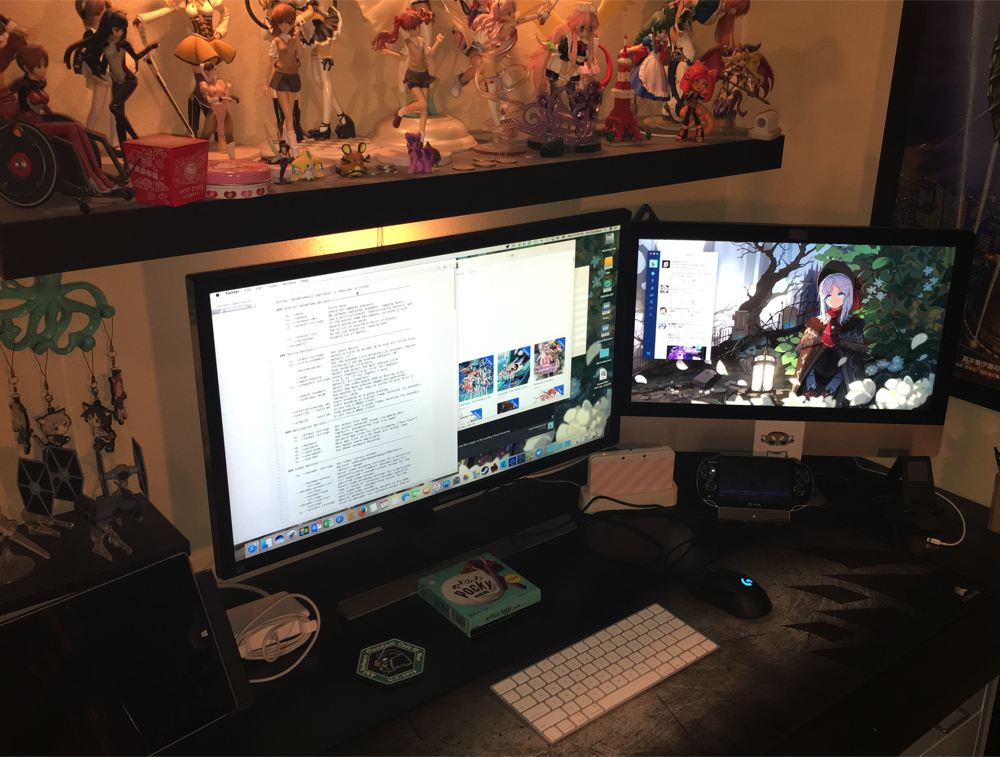 So that was the final straw that got the 4k monitor moved from my gaming PC over to the iMac that I use for productivity tasks, and it unsurprisingly makes a great Mac monitor. HiDPI displays have been a Thing on Macs for five years now, ever since the first “Retina” MacBook Pro, and of course I’m not trying to do any real gaming on it, so the OS and applications look great, and adding a 28″ external display to the 21″ built-in feels very luxurious.