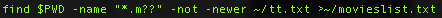 Step two: Using this file, get a list of all files with either mp4 or m4v extensions that are older than June 1 of 2013. This actually gets all files with an extension starting with m, so it picks up mp3 etc. Not hard to filter those out tho.