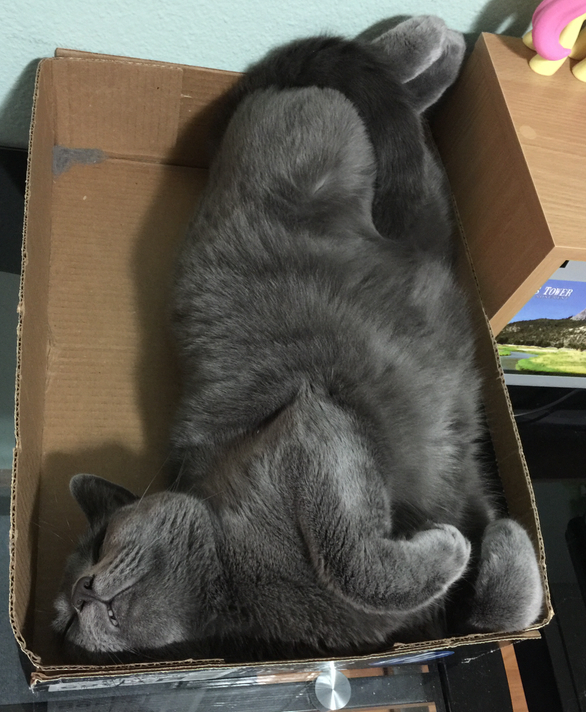 Finally, have a picture of a cat. This is Blue. He’s a colossal bully to our other three cats and a bit of a nightmare to anything small and breakable or large and scratchable, but he makes up for it with cuteness. He likes sleeping on his back a lot and hasn’t seemed to grasp that this is a terribly vulnerable position for any cat.
