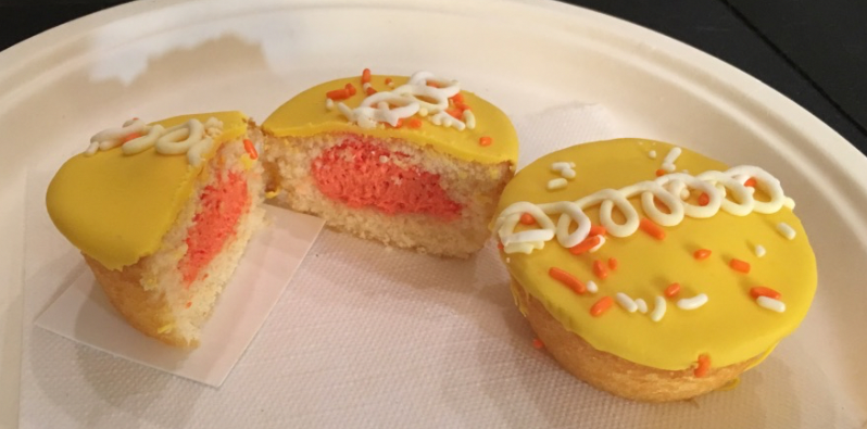 Orange-ish filling, as promised, and a few sprinkles to add a festive air to the things and to fall off when you try to take a bite.