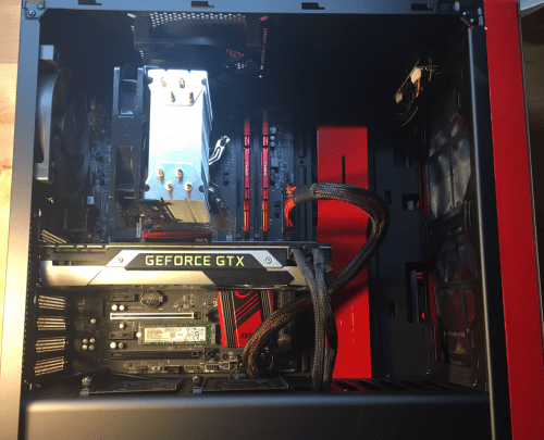 The case fans are always-on and not controlled by the motherboard, so I’d recommend having it under a desk to cut down on some of the hum if fan noise bothers you. You can mount PWM-controlled fans of your own, of course, but the ones that came built-in seem to blow cool air pretty nicely so I will deal with the hum.