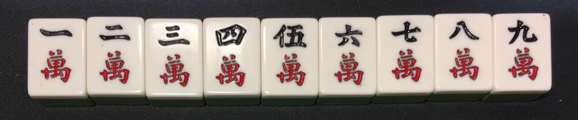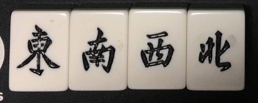 Japanese mahjong has three numbered suits, one set of four “winds” tiles, and one set of three “dragon” tiles. (Chinese versions of the game add some more tiles, so you’ll see season and flower tiles in a Chinese mahjong set or game.)