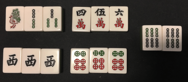 Sou 1-2-3, Wan 4-5-6, West x 3, Pin 6-6-6 and Sou 6-6