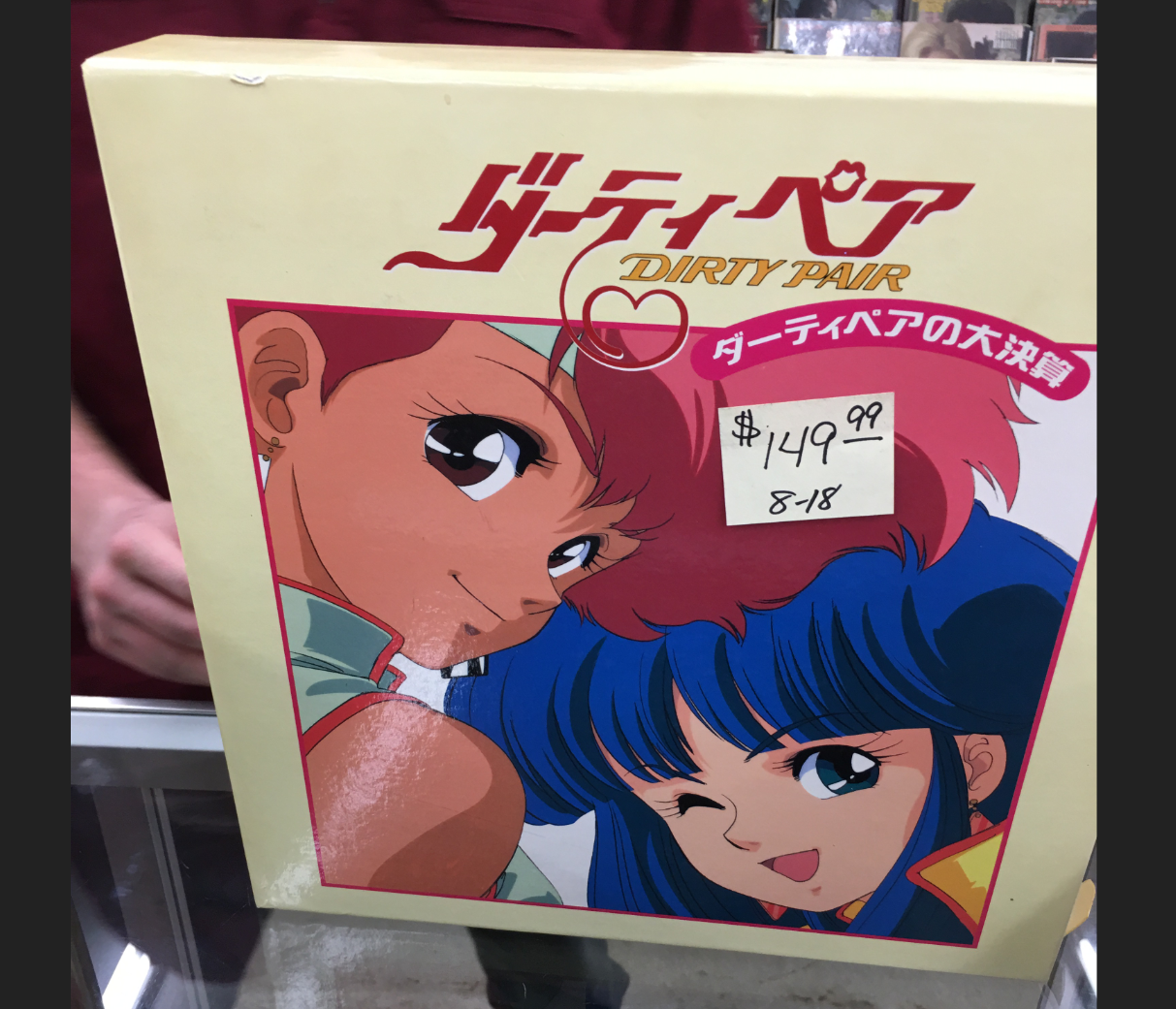 So. That’s the 1993 Dirty Pair Complete TV and OVA series box set, something I would have very much liked to have owned back in the day. Nine CLV laserdiscs, original price a little over Y57000, current value… well, not very much. The odds of them ever finding a buyer for this thing are basically zero, but let’s set that aside for the moment and wonder at the notion that this thing wound its way across the Pacific and eventually wound up in this case.
