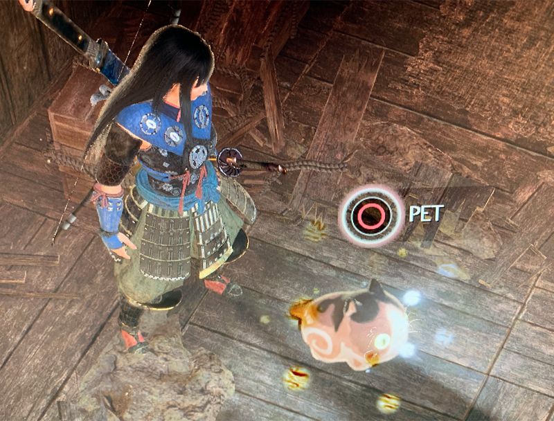 On the lighter side of things, I occasionally stumbled across a strange fat calico cat who I could pet, and who would then follow me around and rub against my legs.  This seemed to give me some sort of buff, though I couldn’t figure out exactly what it was buffing.
