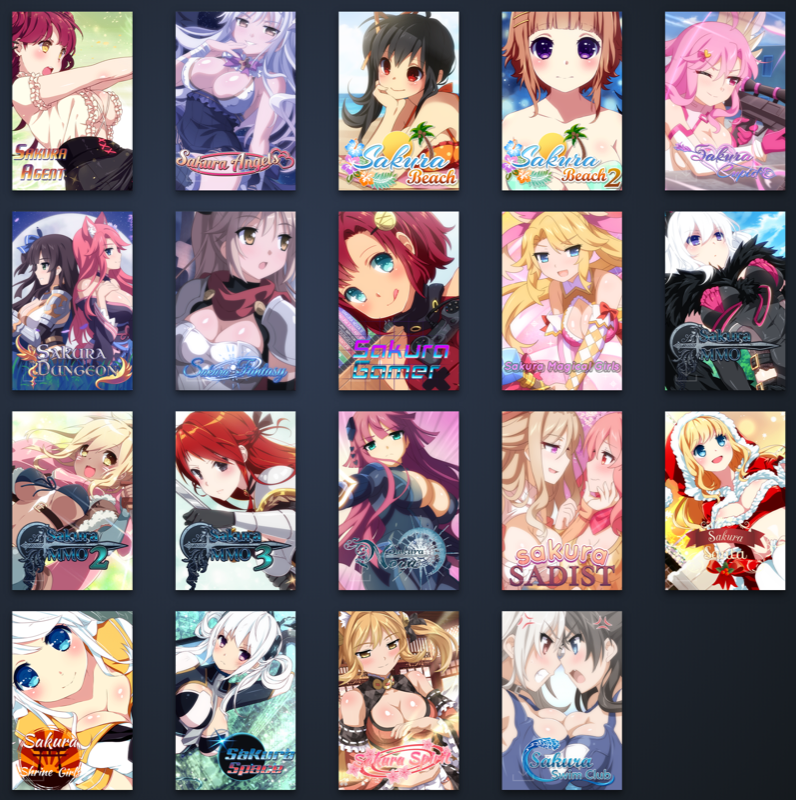 Long story short, I made a set of Steam icons for all 19 of Winged Cloud’s Sakura visual novels. Some of them are better than others. It was kind of a fun reason to actually load up Photoshop Elements and play around with it, so even if nobody else ever uses these I feel like I learned some stuff.