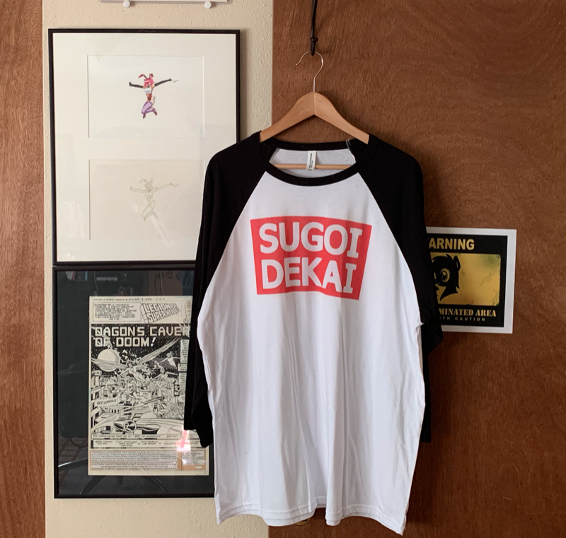 Anyway, Uzaki tends to run around in a shirt with SUGOI DEKAI (“Super Huge”) proudly emblazoned across the chest area, and there are entrepreneurial sorts of people on the internet who have realized that this is a very simple design to copy.