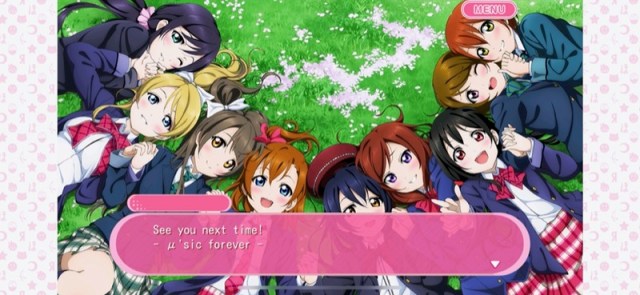 You need to reach level 155 to unlock the final μ’s story chapter. If you started the game today and played exclusively “Hard” songs, it would take about 6000 songs to reach level 155. They’re short songs, mind you, but even at three minutes or less there is a certain time commitment.