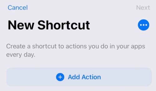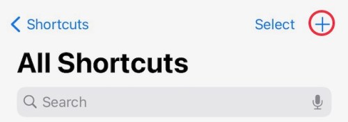 It starts by opening the Shortcuts app and choosing the + New Shortcut button.