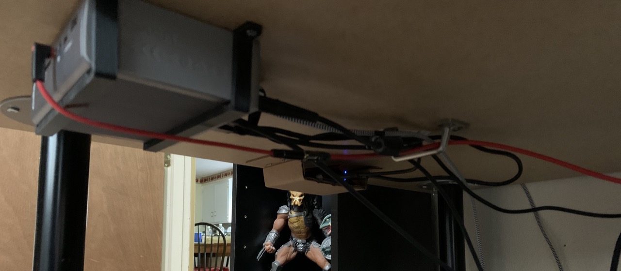 The hub is mounted with a 3D-printed mount from eBay. Technically I could have downloaded the 3D printer file and taken it to the local makerspace, but I’m not even sure if they’re open these days what with the pandemic and all.