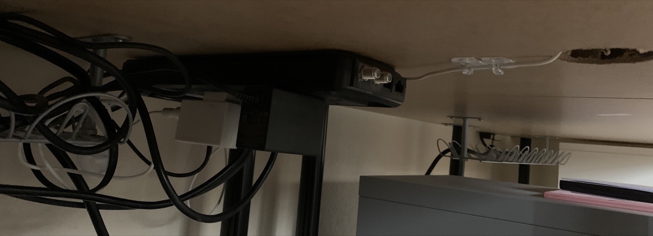 The thing I wanted to focus on was having less stuff on top of the desk, where possible, and trying to make some sense of the massive rat’s nest of cables underneath.