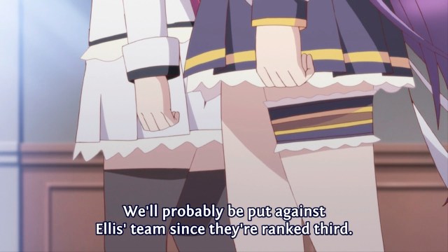 On the topic of knee socks, the only way this differentiates itself from the thousand other harem fantasy anime shows based on light novels is that it’s basically Zettai Ryouiki: The Animation. There is a ridiculous amount of dialog delivered with the camera at this viewing angle: