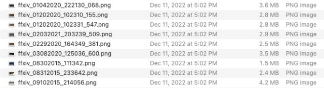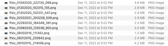 So this is what a folder of screenshots from FFXIV looked like: