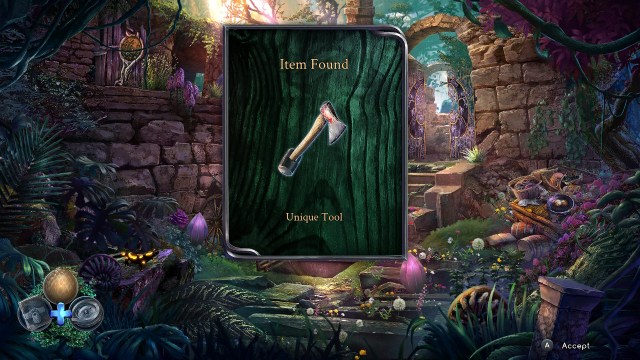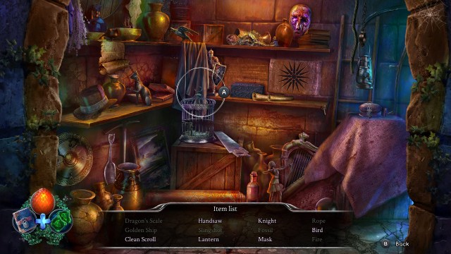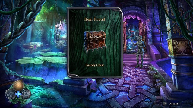 Second, it’s super short. Like, you can make any hidden object game shorter if you abuse the “where do I need to go” button and fast travel, much less the hint button and puzzle skips, but this is blink-and-you’ll-miss-it short. There aren’t very many hidden object scenes at all, and few puzzles that aren’t a matter of just using every item in your inventory on them until one of them works.