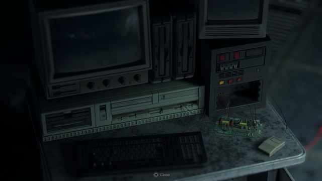 You also see them in municipal works, like down here below the police station. This one is particularly weird because it has a different keyboard than you see in other places in the game, and my first reaction was to make fun of it because it wasn’t even plugged in.